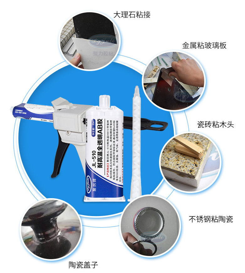 东莞聚力胶粘制品有限公司是行业内口碑非常好的食品级环氧AB胶水生产厂家,生产的聚厉牌JL-510耐高温200℃食品级环氧AB胶水符合环保标准,已通过欧盟ROHS标准和SGS检测,本品为快速固化系列、透明粘稠状环氧树脂粘接剂;可低温或常温固化,固化速度快;固化后粘接强度超级高,已经为1588家客户提供了优异环保的AB胶水,赢得了这些客户的信赖和不断回购。聚力公司免费为客户试样检测、免费赠送胶水样品、免费提供胶粘剂解决方案,还可以提供一对一个性化定制服务和优惠价格直销服务,4-6小时即可出货,发顺丰物流,售后无忧。胶水货品可承受集装箱运输温度,适应出口销往海外。