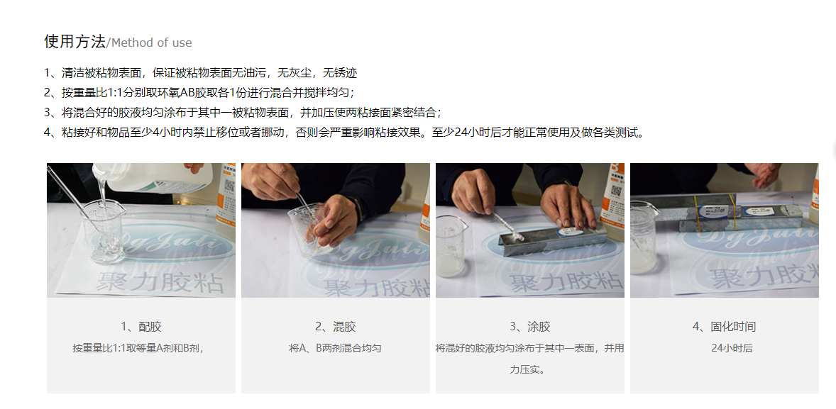 - 温馨提示:以上是关于食品级环氧AB胶水|粘接强度高+固化速度快|1588家客户信赖聚力的相关知识,产品由聚力胶水厂家提供,20多年品牌,数百款产品,满足不同行业、不同材质、不同工艺、不同客户的需求,可以根据您的需求量身定制。