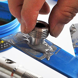 1、表面处理:除去基体表面松动物质,采用喷砂、电砂轮、钢丝刷或粗砂纸等方式打磨,提高修复表面的粗糙度,使用清洗剂擦拭,以清洁接着表面。 2、钢质修补剂是由A、B双组份组成,使用时严格按规定的配合比将主剂A和固化剂B充分混合至颜色均匀一致,并在规定的可使用时间内用完,剩余的胶不可再用。 |