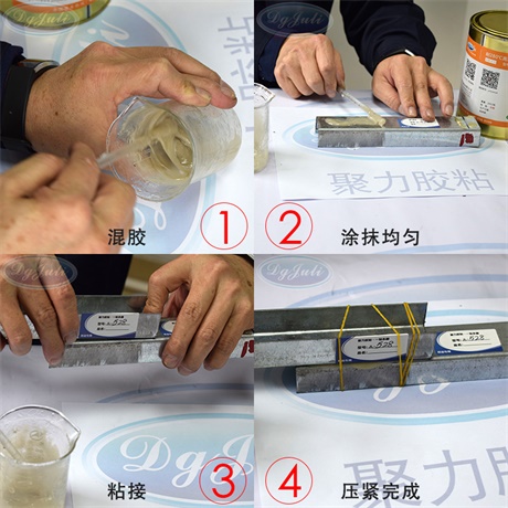 1:1分别取环氧A 3、将混合好的粘研磨高温AB胶液均匀涂布于其中一被粘物表面,并加压使两粘接面紧密结合;