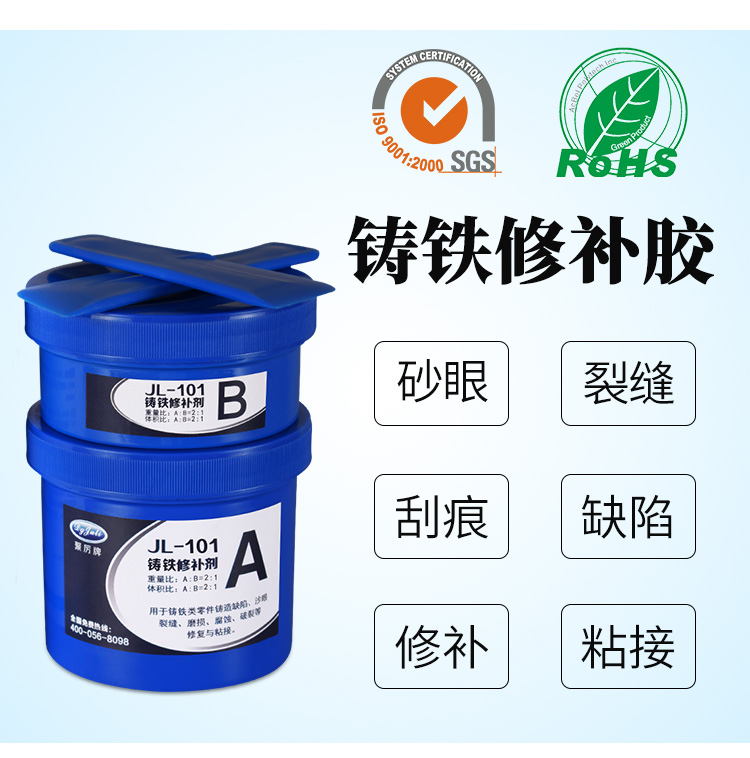 - 温馨提示:以上是关于来自东莞聚厉的高温铸铁修补剂 修复金属腐蚀砂眼漏水漏油的相关知识,产品由聚力胶水厂家提供,20多年品牌,数百款产品,满足不同行业、不同材质、不同工艺、不同客户的需求,可以根据您的需求量身定制。