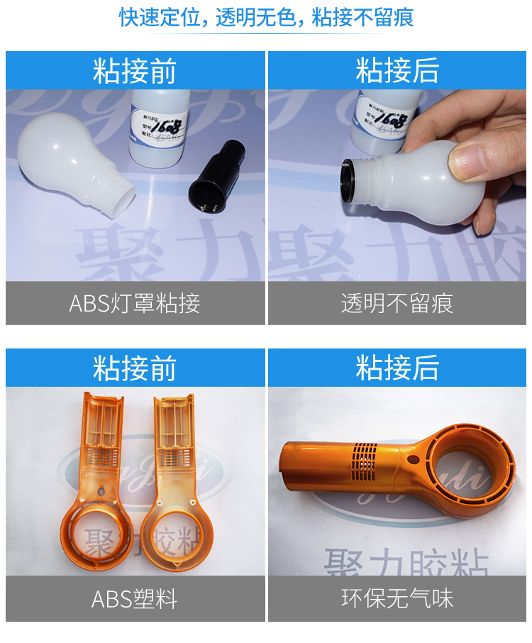 - 温馨提示:以上是关于粘ABS塑料什么胶好用 东莞聚厉透明高强度ABS塑料专用胶水的相关知识,产品由聚力胶水厂家提供,20多年品牌,数百款产品,满足不同行业、不同材质、不同工艺、不同客户的需求,可以根据您的需求量身定制。