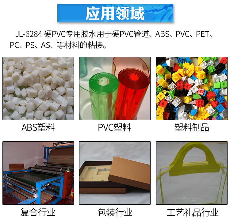聚厉PVC透明塑料胶水广泛应用于应用于PVC、ABS、AS、PU、PC等软质塑料的粘接,具有耐水泡、抗弯曲、抗腐蚀的效果。广泛应用于塑料制品、儿童玩具、包装材料、医疗产品等塑料制品有很好粘接强度。PVC塑料专用胶水为对于粘接PVC、ABS塑料有优异的粘接效果