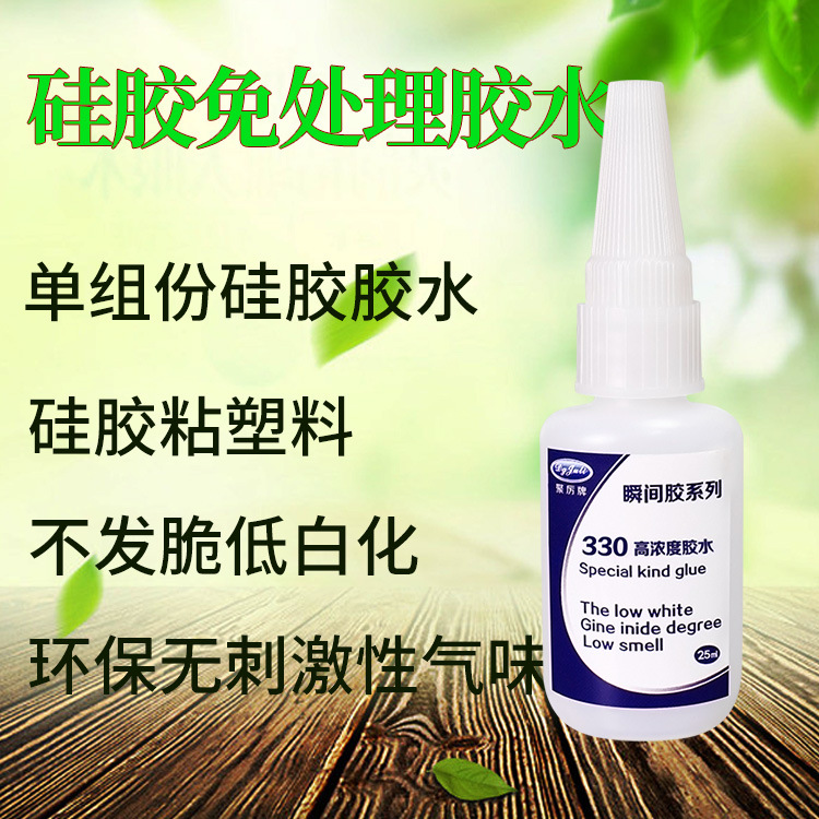 聚力免处理低白化硅胶快干胶是一种单组分的胶粘剂,为称为硅胶瞬间胶,该款硅胶胶水是一款细分化的产品,专门用于某些企业级用户的细分要求,免处理,节省工艺和工序,提高效率,节省成本。气味低,黏度低,粘性强,浓度适中,适合自动化和手工操作,使用非常方便,已通过欧盟环保检测。适合硅胶和硅胶,硅胶与金属,硅胶跟塑胶,硅胶与陶瓷木材等材料的粘合。这款无需处理即可粘接;广泛应用于电子电器,玩具礼品,医疗器材,汽车配件等。