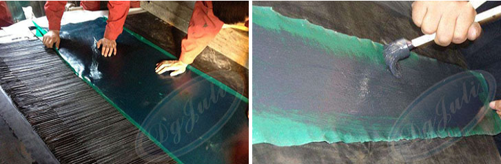 5、待二遍胶烘烤干燥后,即可粘合两面,用手锤敲打密实,24小时后可达到高前度。