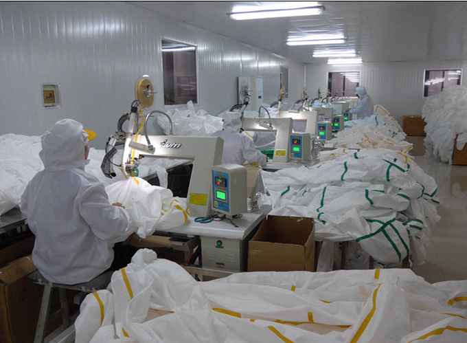 4、双层可采用防护服热熔胶将缝合好的接缝处双面用热熔胶带溶合密封。可大大提高防护液气类化学品的轻度及能力。此种接缝方式多用于重型防化服中。