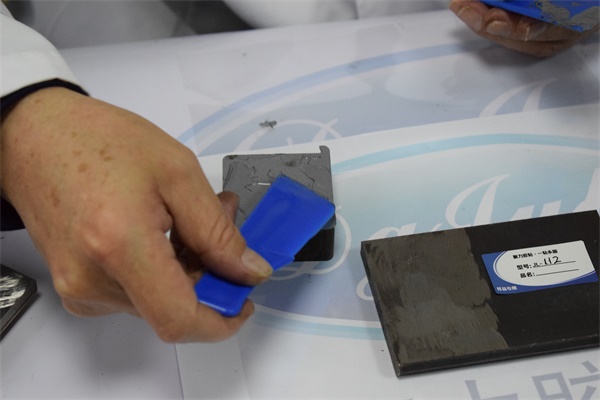 04—【强度测试】把铝合金属件放置在173度的烘烤箱内几个小时,然后取出,接下来用其他的厚板金属对此铝合金进行敲打测试,结果并没有脱胶,也没有发生断裂。