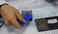 02—【涂胶】 混合后的胶水先后涂布于一个铝合金属件接面,再涂布于另一个铝合金属件接面,然后进行粘合修补胶水。