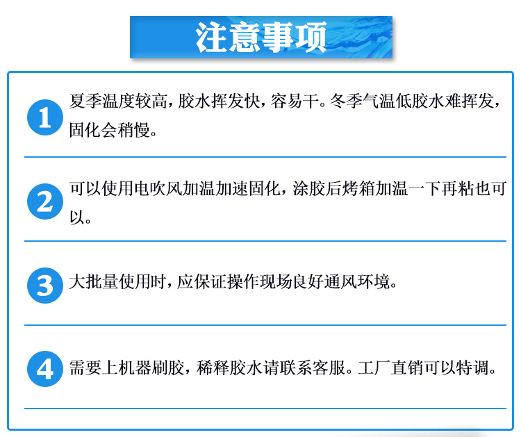 4、被黏物表面打毛处理或者二次涂胶可使黏接效果更佳。