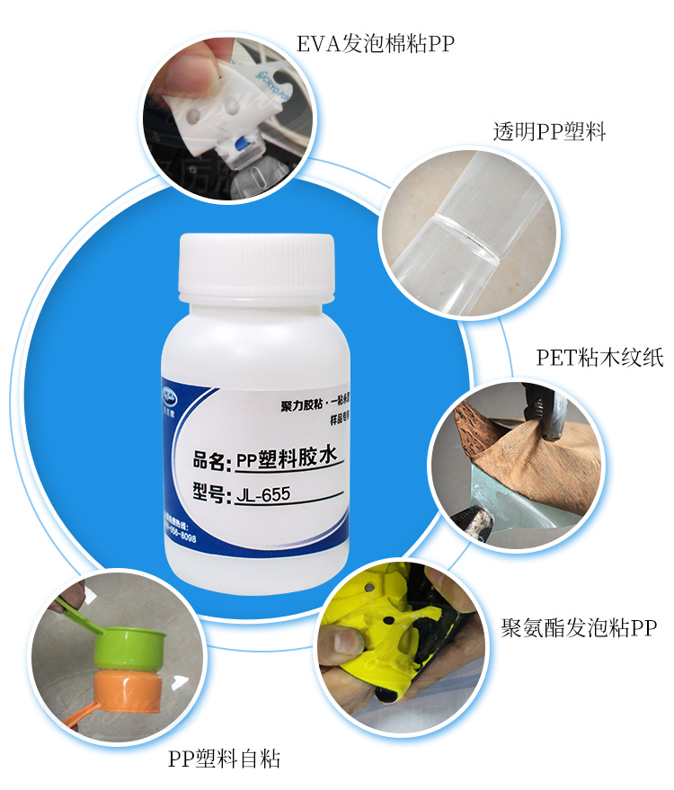 我司自主研发生产的JL-655免处理PP胶水,耐温-30~+80度,透明粘稠液体,对于PP塑料的粘接,效果优异,可以达到超过材质本身的强度,通俗的讲,就是用力去拉扯PP塑料,PP塑料损坏了,我们的PP塑料专用胶水还没有跟PP塑料分离,而且我们这款PP塑料专用胶水的固含量比较高,密封效果也很好,不用但心渗漏问题。