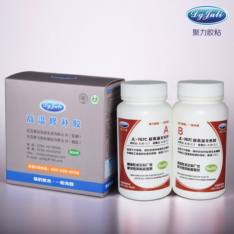 聚力JL-767A耐1730℃高温胶为无机陶瓷材料,耐温1730℃。可修补在高温工况下工作的设备,如修补破损或断裂的耐酸罐、高炉内衬、钢锭模等设备以及燃烧器点火装置、钢水测温探头的灌封等