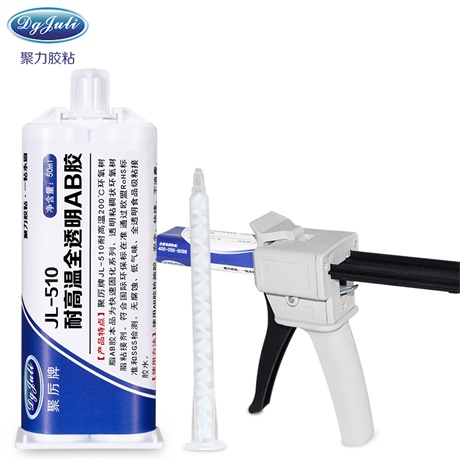 JL-510全透明耐高温环氧树脂AB胶为快速固化、透明粘稠状环氧树脂粘接剂,可低温或常温固化,固化速度快;固化后粘接强度高、硬度较好,韧性佳;广泛应用于电子电气、工艺礼品、石油化工等行业的金属、陶瓷、木材、玻璃及硬质塑胶之间的封装粘接。