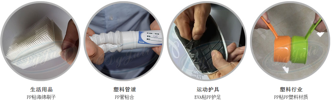 JL-655PP专用胶水是专门针对PP(聚丙烯)的自粘、及PP与其它塑料的粘接,主要应用于PP与PP、ABS、PVC、尼龙、TPU、EVA、竹木、石材等材料的粘接,无需前处理。广泛应用于家电、印刷、工艺品、制刷、喇叭、包装、礼品等行业,PP专用胶水通过欧盟ROHS检测和无卤认证,符合环保标准。